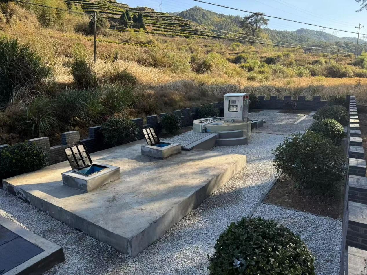浙江省麗水市景寧畬族自治縣景寧縣深垟村的農村生活污水處理30噸/天,核心工藝是采用MABR透氧膜將氧氣傳遞至附著生長的生物膜,實現同步硝化反硝化,去除有機物降低氨氮,出水導入二沉池進行泥水分離,分離后的上清液經過紫外線消毒殺滅病菌微生物后流入人工濕地,在人工濕地微生物及植物吸收的作用下進一步脫氮除磷,最后達標排入周邊水體,出水達到《農村生活污水集中處理設施水污染物排放標準》(DB33973-2021)?中的二級標準,目前已順利通過項目竣工驗收。