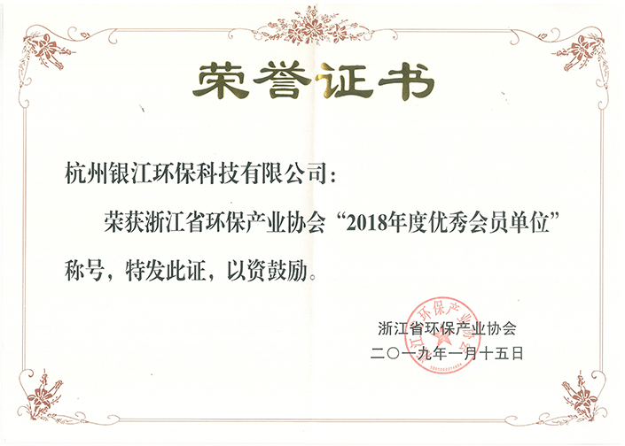 銀江環保榮獲浙江省環保產業協會“2018年度優秀會員單位“稱號