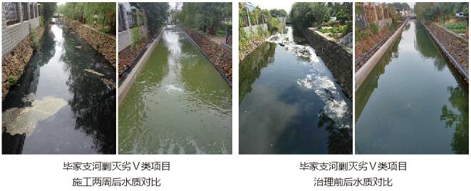 通過(guò)截污納管、底泥改良、增氧曝氣、生態(tài)治理,逐步恢復(fù)河道的水體生態(tài),消除黑臭,2018年達(dá)到 Ⅳ類水標(biāo)準(zhǔn)。