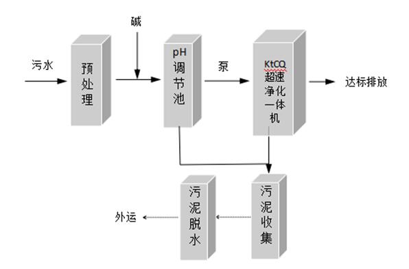 預處理:首先對污水進行預處理,中和污水中部分酸,減少后續處理設備的負荷、同時減少對后續設備的腐蝕作用。