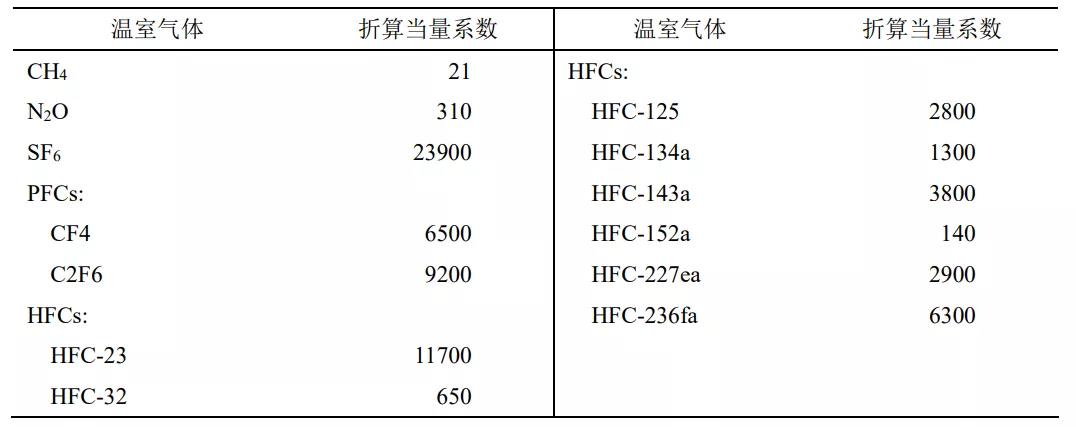表2 典型非CO2溫室氣體的折算當量系數(shù)