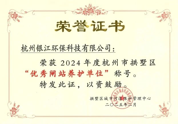銀江環保運維團隊兢兢業業養護拱墅區閘站,榮獲2024年“優秀閘站養護單位”稱號!