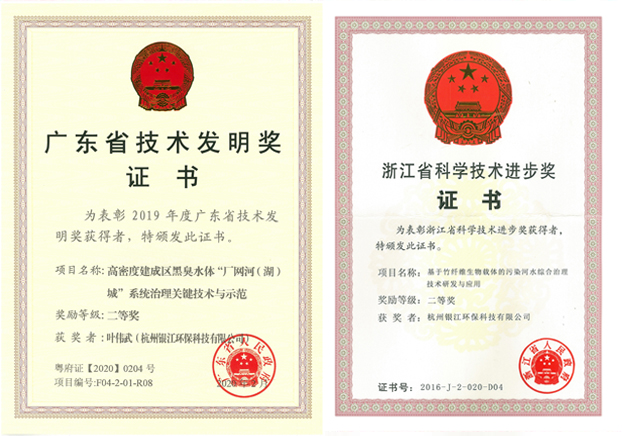 銀江環保開發的“基于竹纖維生物載體的污染河水綜合治理技術與應用”獲得浙江省科技進步二等獎。
