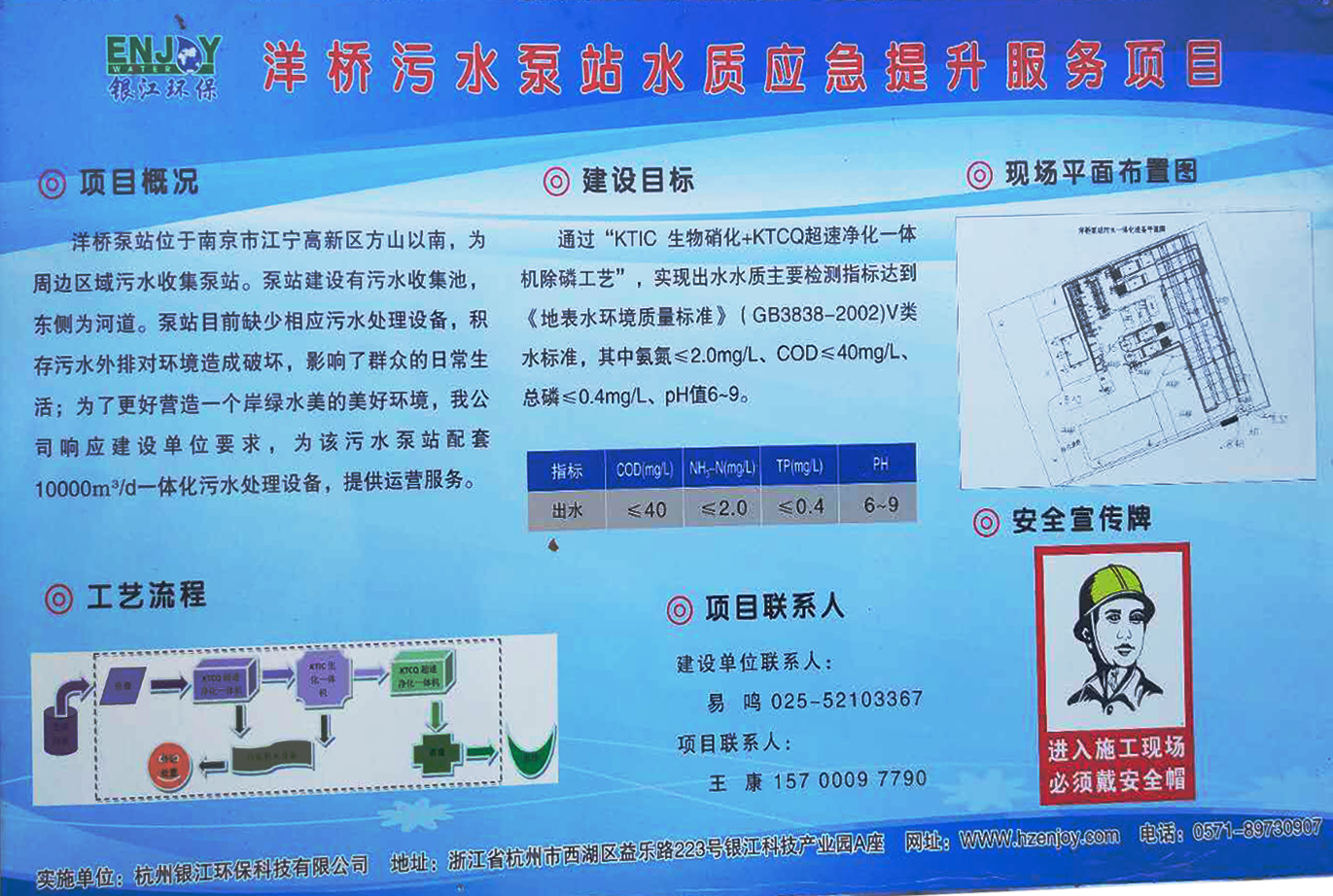 工程名稱:南京市江寧區(qū)泵站污水原位擴容處理項目