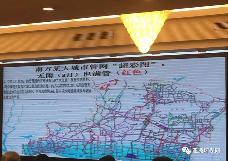 據(jù)他提供的南方某大城市管網(wǎng)運(yùn)行超彩圖顯示,納污范圍內(nèi)共布設(shè)有150個(gè)水位點(diǎn),在雨少季的3月份,滿(mǎn)管天數(shù)超過(guò)20天的點(diǎn)位為65處,約占總數(shù)的43.3%,而在6月份,滿(mǎn)管天數(shù)超過(guò)20天的點(diǎn)位數(shù)則更多,為84處,約占總數(shù)的56%。