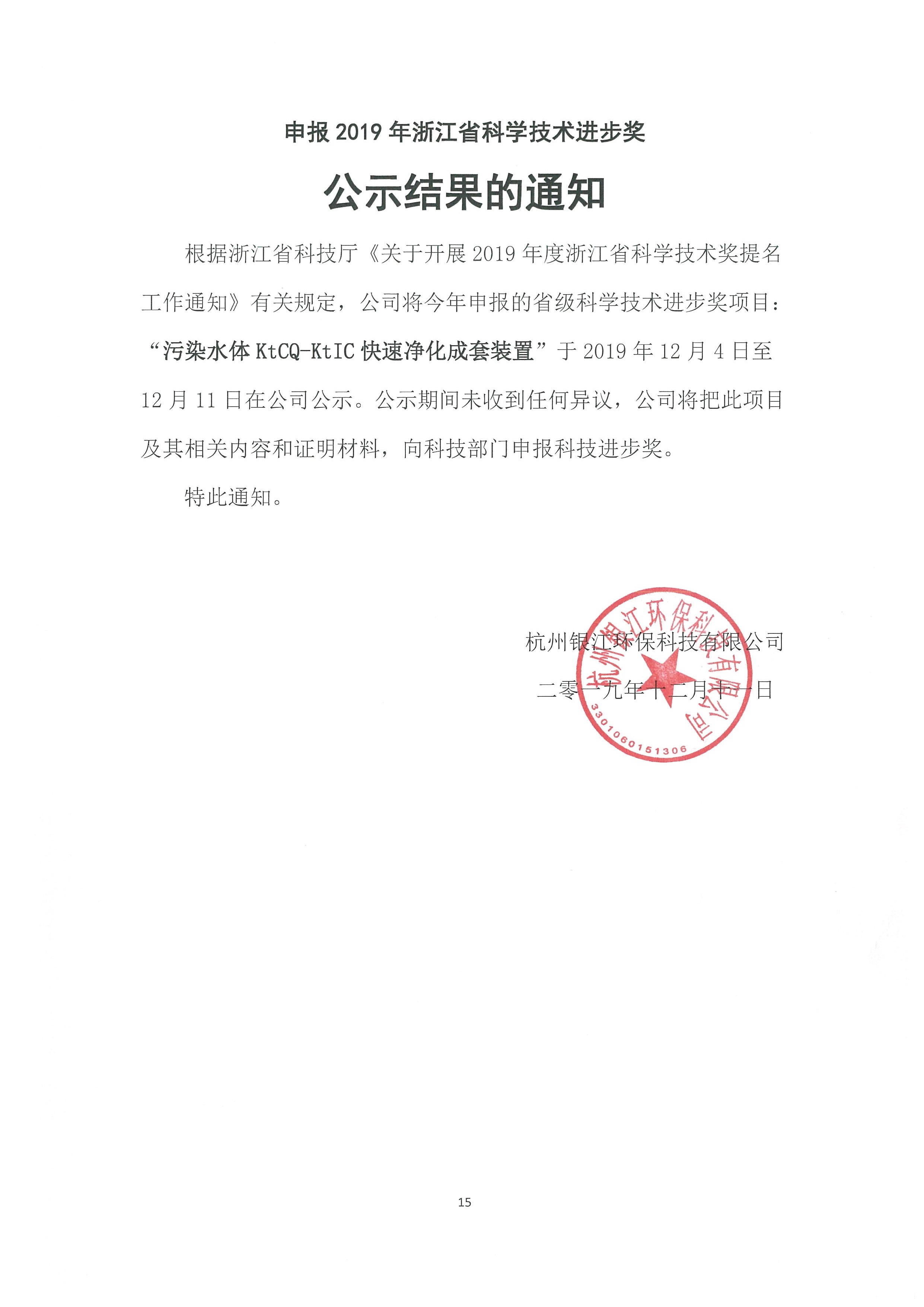浙江省科學技術進步獎公示結果通知發布日期:2019-12-11