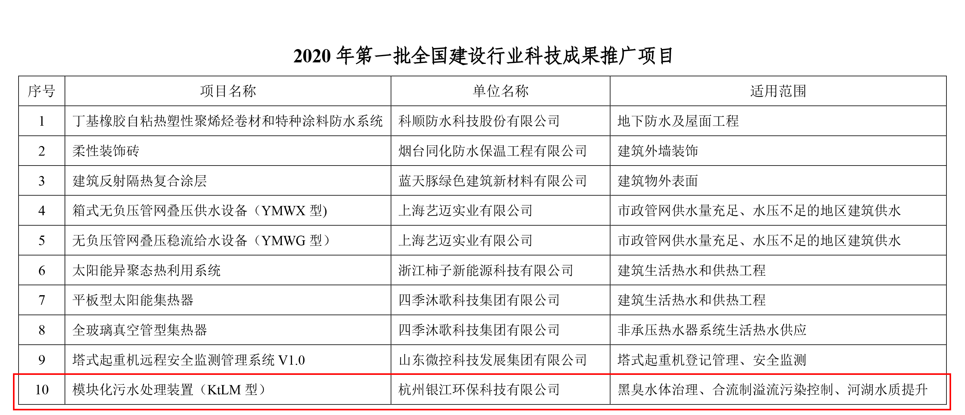 祝賀銀江環(huán)保“模塊化污水處理裝置(KtLM型)”入選2020年第一批全國(guó)建設(shè)行業(yè)科技成果推廣項(xiàng)目。