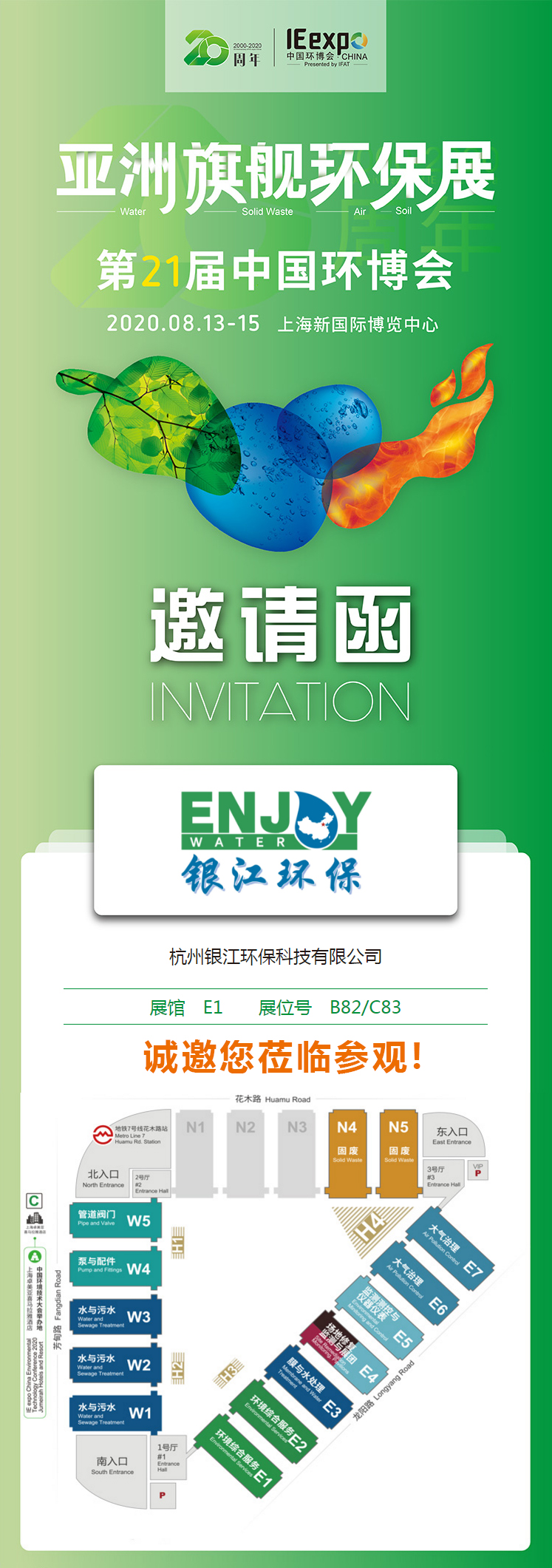 在這一年一度的環保行業盛會上,銀江環保作為武漢火神山、雷神山醫院污水處理工程全流程系統供貨商,將實物展出銀江環保醫院用水處理系統——YYLH系列,銀江環保以最新的產品及技術期待與業界在盛夏8月,共同探討交流產業走勢、開拓合作機會。我們在E1館 B82/C83展位誠邀您蒞臨參觀!