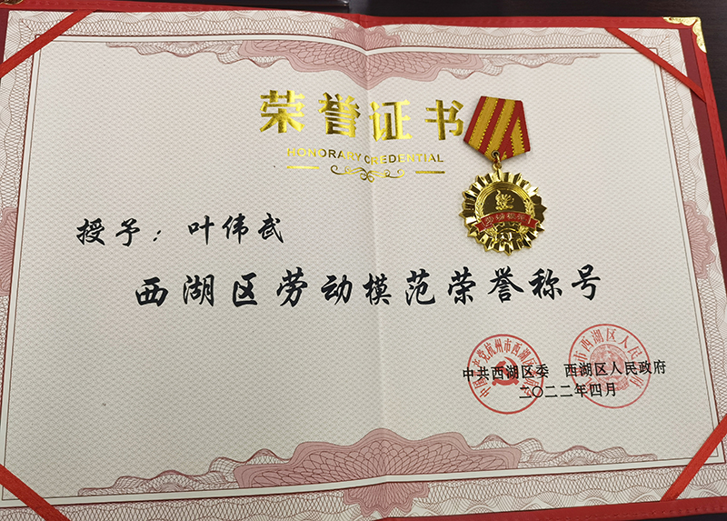 董事長葉偉武榮獲西湖區勞動模范稱號發布日期:2022-05-10
