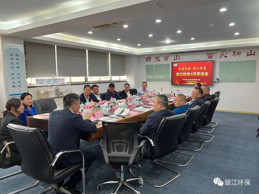 4月12日下午,浙大校友蒞臨銀江環保交流聯誼,董事長葉偉武、常務副總沈小明等公司管理人員熱情接待并全程陪同。