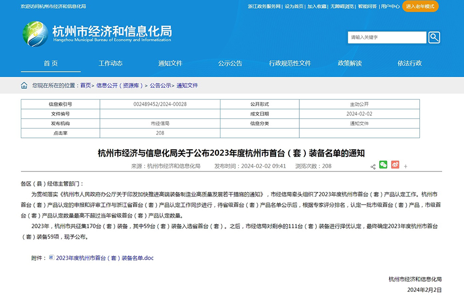 銀江環(huán)保水處理系統(tǒng)入選2023年度杭州市首臺(tái)(套)裝備發(fā)布日期:2024-02-05